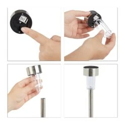 Bringen Sie stimmungsvolle Beleuchtung in Ihren Garten mit den Solarleuchten im 10er Set. Die LED Gartenlampen lassen sich mithilfe der beiliegenden Erdspieße ganz einfach in den Boden stecken. Platzieren Sie die Gartenweg Beleuchtung dort, wo Sie tagsüber ausreichend Sonnenlicht erhalten. Somit können sich die LED Leuchten innerhalb von 6 Stunden voll aufladen, um anschließend ebenso lange zu leuchten. Die stilvoll leuchtenden Gartenlichter sind vor allem in der Dunkelheit ein absolutes Highlight. Nutzen Sie die wetterfesten LED Gartenleuchten zu verschiedenen Anlässen, wie Hochzeiten oder Grillpartys, um für die richtige Stimmung zu sorgen oder als dekorative Kennzeichnung von Gehwegen.