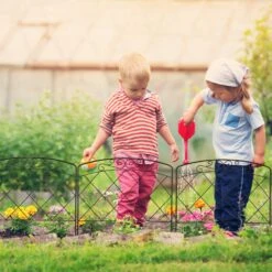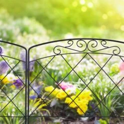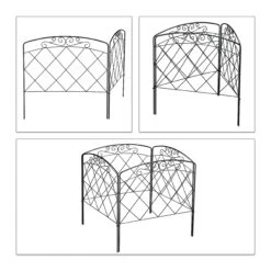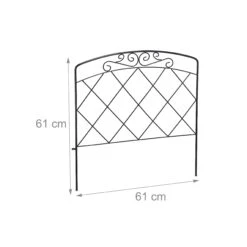 Mit diesem Steckzaun markieren Sie die Übergänge zwischen Beeten, Grünfläche, Wegen und Rabatten. Darüber hinaus bieten Sie Ihren Pflanzen ein dekoratives Rankgitter. Um die Beeteinfassung zu arrangieren, wird diese lediglich im Boden versenkt, wo die Erdspieße für optimalen Halt sorgen. Sie können die Elemente des Zierzauns je nach Bedarf dreieckig, viereckig, gerade oder als Ecke aneinanderreihen. Der Dekozaun sorgt dabei mit seinem antiken Design für einen Hingucker in Ihrem Garten.