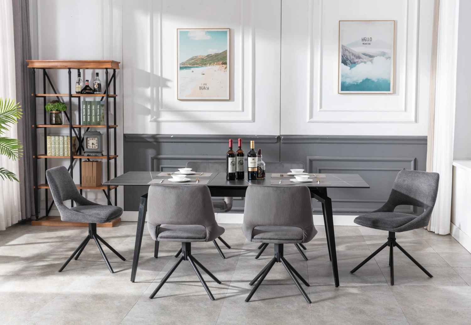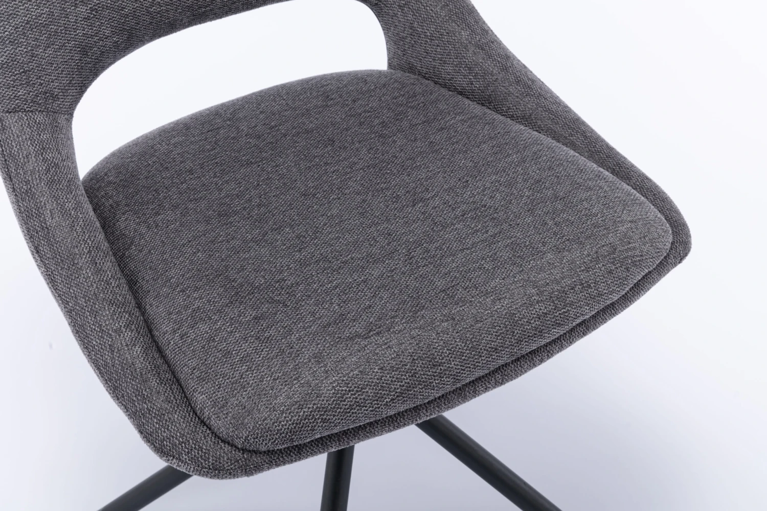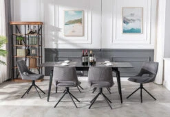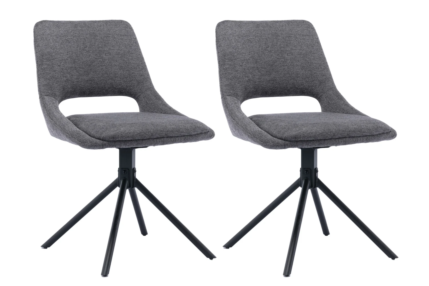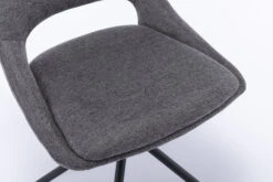 Der hochwertige Stuhl ist mit einem modernen Webstoff bezogen. Dieser unterstreicht das trendige 4-Fuß-Untergestell aus Metall, welches in schwarz gehalten ist. Das Stuhlset hat einen hohen Sitzkomfort dank der gepolsterten Sitz- und Rückenfläche. So lädt der Esszimmerstuhl Freunde und Familie zum Verweilen ein. Der Ausschnitt im Rücken rundet das Design ab und verleiht dem Stuhl mehr Leichtigkeit. Ein besonderer Clou ist die drehbare Sitzschale. Dank der 360 Grad Drehfunktion ist das Aufstehen vom Tisch ohne lästiges Stühlerücken möglich.