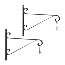 Mit dieser schicken Blumenampelhalterung im 2er Set kannst Du Deine Pflanzen und Blumentöpfe dekorativ in Szene setzen. Der schwarze Ampelhalter mit den geschwungenen Ornamenten eignet sich hervorragend für Deinen Balkon oder Garten, kann aber auch in der Wohnung genutzt werden. Laternen, Windspiele oder Blumenkränze kannst Du ebenso an dem Wandhaken präsentieren. Die Pflanzenaufhängung aus Eisen kann mithilfe des beiliegenden Montagematerials schnell an der Wand befestigt werden.