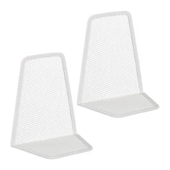 Du möchtest Ordnung in Dein Bücherregal bringen? Mit diesen Buchstützen bleiben Deine Schmöker immer aufrecht stehen und Du hast einen besseren Überblick über Deine Sammlung. Die Bücherwinkel kommen im 2er Set, sodass Du Deinen Lesestoff von zwei Seiten beschweren kannst. Schiebe die Buchhalter einfach unter die äußeren Bücher im Regal. Die Bücherstopper sind aus robustem Metall und überzeugen mit ihrem dezenten Mesh-Design. Gerne kannst du die Bücherstützen auch für DVDs, CDs und Ordner nutzen.