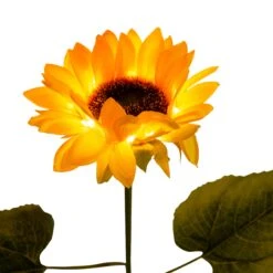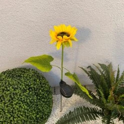 Die LED-Solar-Erdspieß Blume verschönert den Garten dauerhaft ohne zu verwelken und ist auch bei Nacht gut sichtbar.