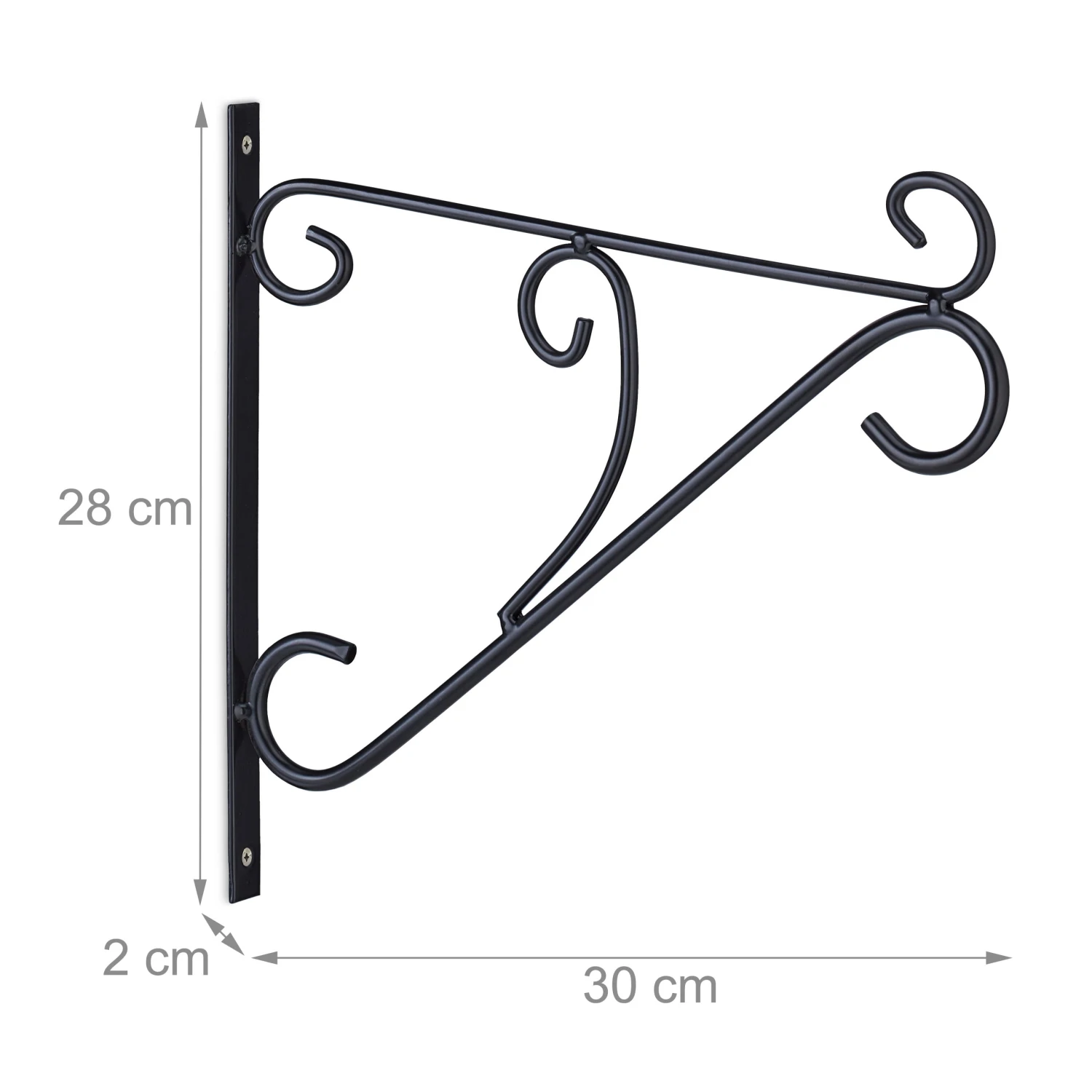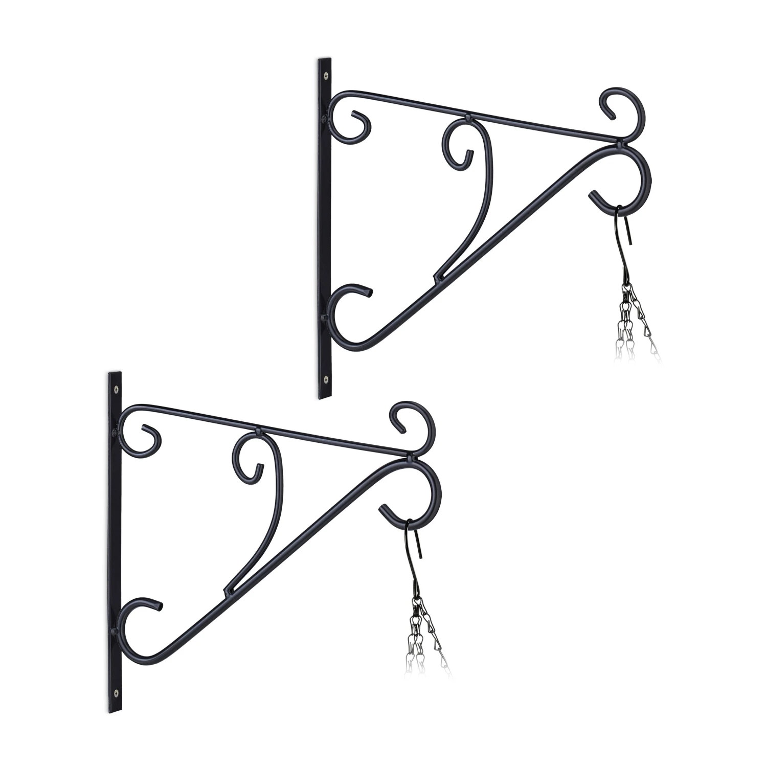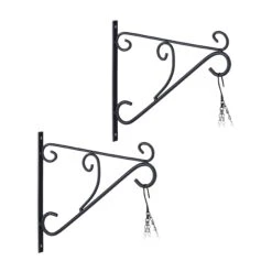 Mit dieser schicken Blumenampelhalterung im 2er Set kannst Du Deine Pflanzen und Blumentöpfe dekorativ in Szene setzen. Der schwarze Ampelhalter mit den geschwungenen Ornamenten eignet sich hervorragend für Deinen Balkon oder Garten, kann aber auch in der Wohnung genutzt werden. Laternen, Windspiele oder Blumenkränze kannst Du ebenso an dem Wandhaken präsentieren. Die Pflanzenaufhängung kann mithilfe des beiliegenden Montagematerials einfach an der Wand befestigt werden.