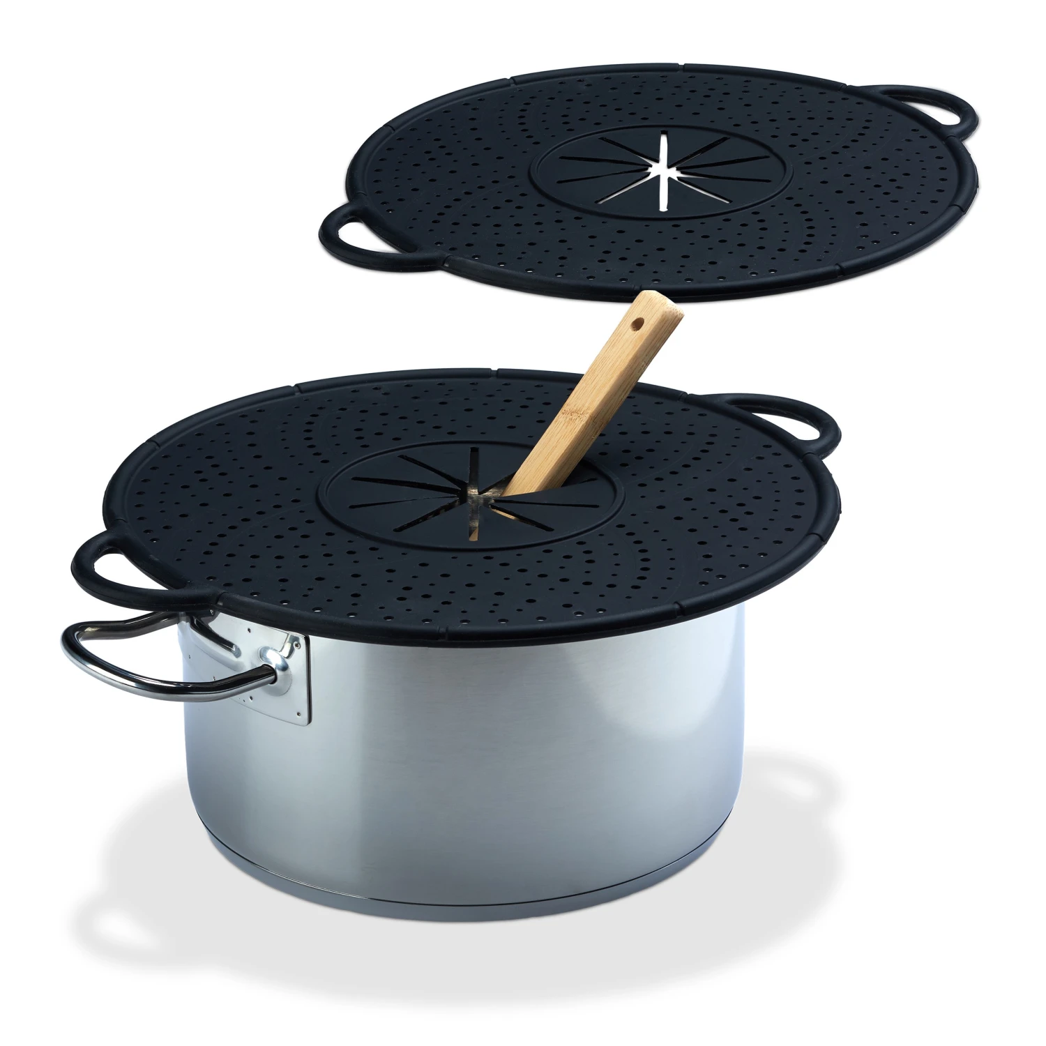 Wenn Sie keine Freude an klappernden Topfdeckeln und überkochenden Speisen auf Ihren Herdplatten haben, ist der Überkochschutz der passende Küchenhelfer für Sie. Durch die Löcher können Dampf und heiße Luft problemlos entweichen. Auch der Griff zu Mixer und Rührschüssel endet dank des vielseitigen Silikondeckels nicht in einem klebrigen Chaos an Ihren Fliesen. Da der Überlaufschutz hitzebeständig ist, kann er auch als Backblech für Pizzen genutzt werden. Um den Überkochstopp zu reinigen, reicht es aus, ihn in die Spülmaschine zu geben.
