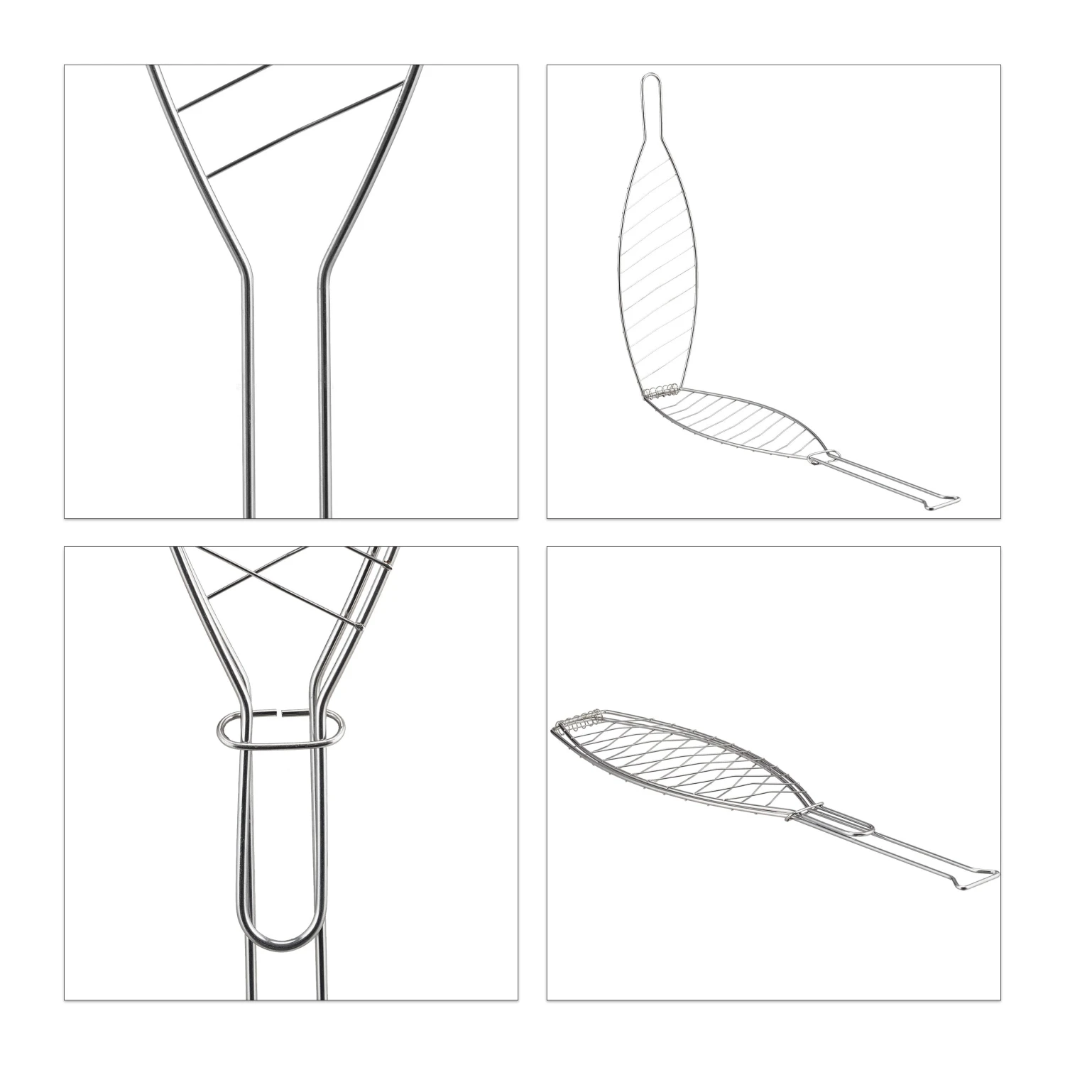 Verwöhne Deine Gäste beim Grillen mit leckeren Fischen. Dank der Fischbräter bringst du Abwechslung auf den Tisch. Ob Zander, Forelle oder Barsch – kleine bis mittlere Fische passen bequem auf die große Liegefläche des Fischgrillers. Die Oberseite der Fischgrillzange auf Edelstahl kann einfach aufgeklappt werden. Durch die leichte Biegung der Streben passen auch dickere Fische auf den Grill. Das 3er Set eignet sich zudem hervorragend zum Grillen von diversem Gemüse und Meeresfrüchten.