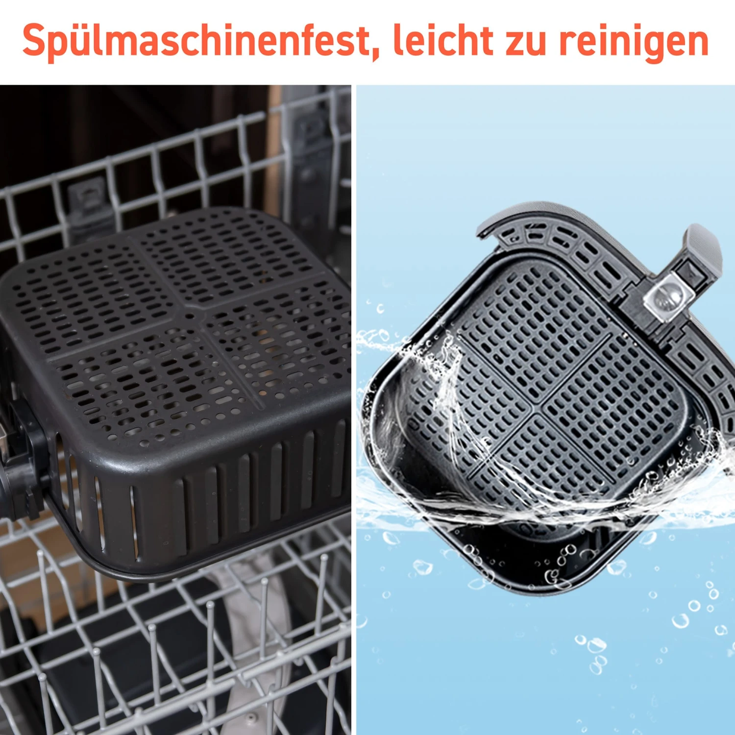 Bevor Sie die Heißluftfritteuse zum ersten Mal benutzen, bitte entfernen Sie alle Plastik-Schutzfolien, reinigen Sie die Körbe mit Reinigungsmittel und heizen Sie die Heißluftfritteuse einmal vor.