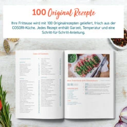 Wenn sie sich für unsere multifunktionale Heißluftfritteuse entscheiden, erhalten Sie als Zugabe ein Rezeptbuch(DE/FR/IT/ES) mit originellen, köstlichen und handlichen Rezepten, welche Sie zu Hause nachkochen können. Wenn Sie englische Rezepte benötigen, wenden Sie sich bitte an unseren Kundenservice! Wir bieten Ihnen ein englisches Rezept im PDF-Form an.