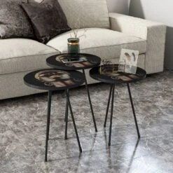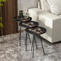 Beistelltisch 3er set Schwarz Metallfüße Dame Rund 10878430