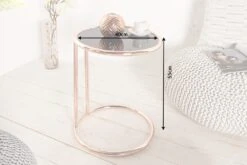 Der Design Beistelltisch ART DECO erweist einer verspielten und glamourösen Kunstepoche seine Referenz und wird damit selbst zum Blickfang in jedem Wohn- und Arbeitszimmer. Durch die kontrastreiche Verbindung der Tischplatte aus schwarz glänzendem Glas mit dem kupferfarbenen Gestell ergibt sich die Neuauflage eines Klassikers, die Sie universell in viele klassische bis moderne Einrichtungsstile integrieren können.