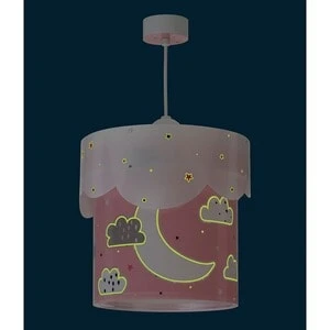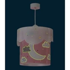 Die Deckenlampe Moon von Dalber lädt den Nachwuchs mit einem großen Halbmond, Sternen und Wolken zum Träumen ein. Deckenlampe Moon von Dalber mit Mond-, Stern- und Wolkenmotiven runder, doppelter Lampenschirm fluoreszierender Effekt abnehmbarer Lichtdiffusor höhenverstellbar aus Polypropylen Die Kinder-Hängeleuchte aus der Moon-Kollektion begeistert mit einem entspannenden Abendhimmel. Das Design mit Monden, Sternen und Wolken ermuntert zum Träumen. Die Lampe verfügt über einen doppelten, transparenten Polypropylen-Schirm. Sie ist höhenverstellbar und besitzt einen abnehmbaren Lichtdiffusor, um die Blendung Deines Minis zu vermeiden. Der fluoreszierende Effekt sorgt dafür, dass die Motive nach dem Ausschalten im Dunkeln noch für einige Minuten sanft weiterleuchten. Da fällt das Einschlummern noch leichter. Hinweis Das passende Leuchtmittel (E27, 15W LED) ist nicht im Lieferumfang enthalten.