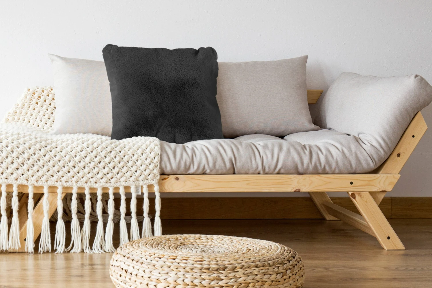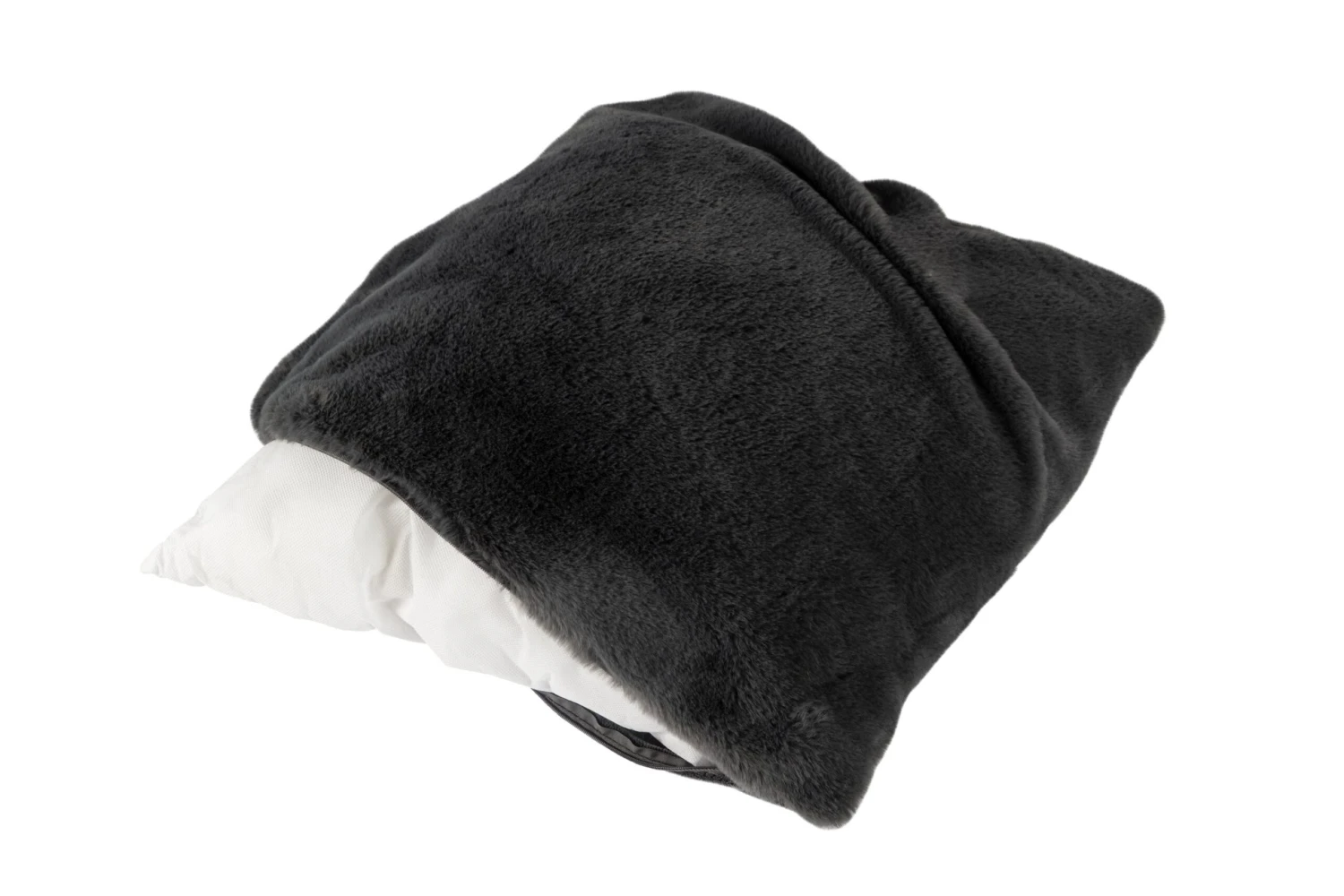 Das Kissen in kuscheliger Felloptik ist eine perfekte Ergänzung für jeden Wohnraum, egal ob als Sitzgelegenheit oder als dekoratives Element.