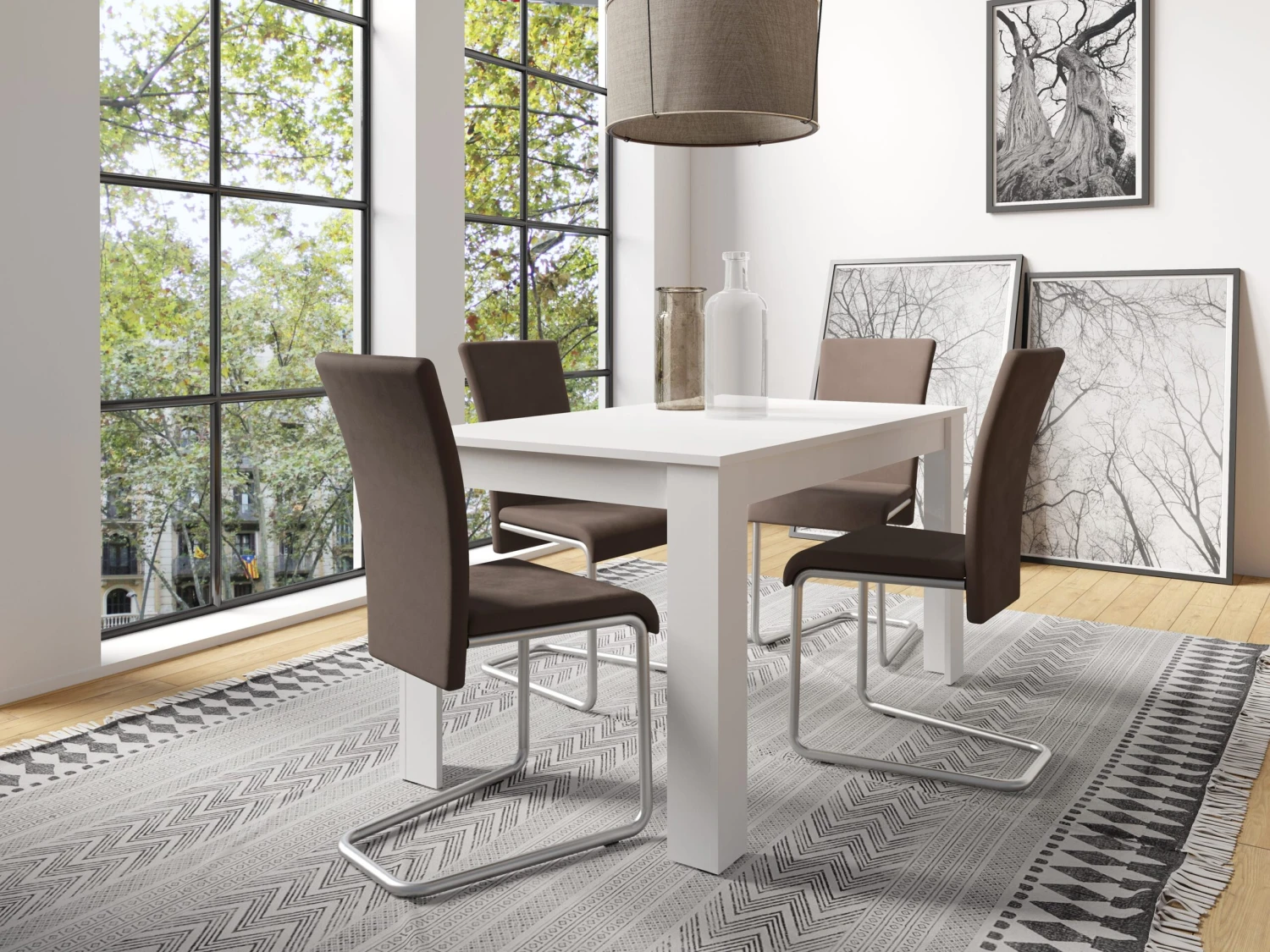 Der Esszimmertisch überzeugt nicht nur durch seine gute Verarbeitung, sondern auch durch sein modernes und zeitloses Design, wodurch er vielseitig einsetzbar ist. Dank der mitgelieferten Aufbauanleitung lässt sich der Küchentisch schnell und einfach montieren. Die Tischoberfläche ist pflegeleicht und lässt sich besonders gut reinigen. Zudem ist sie resistent gegen Schmutz, Fettstoffe und Feuchtigkeit.