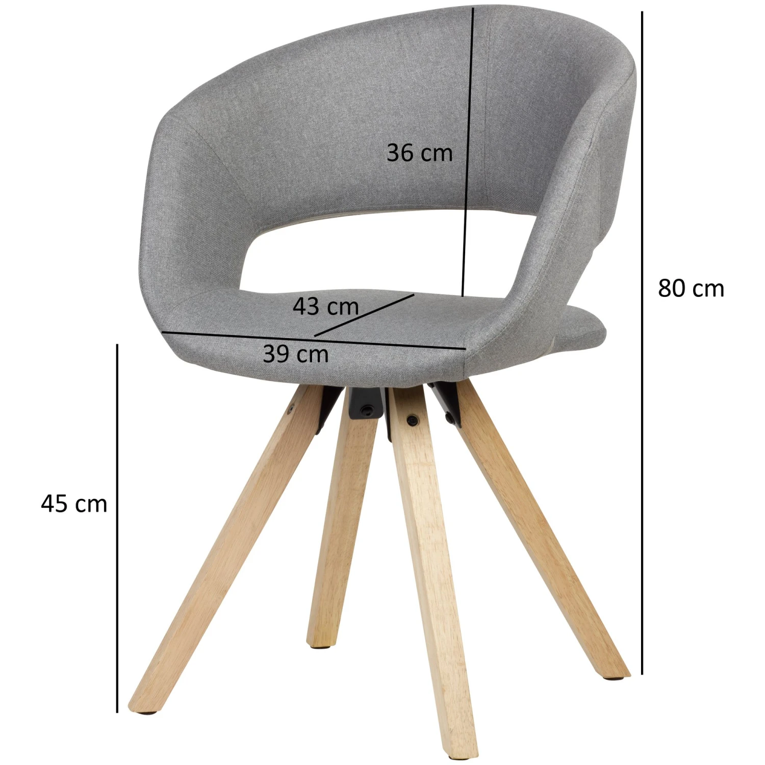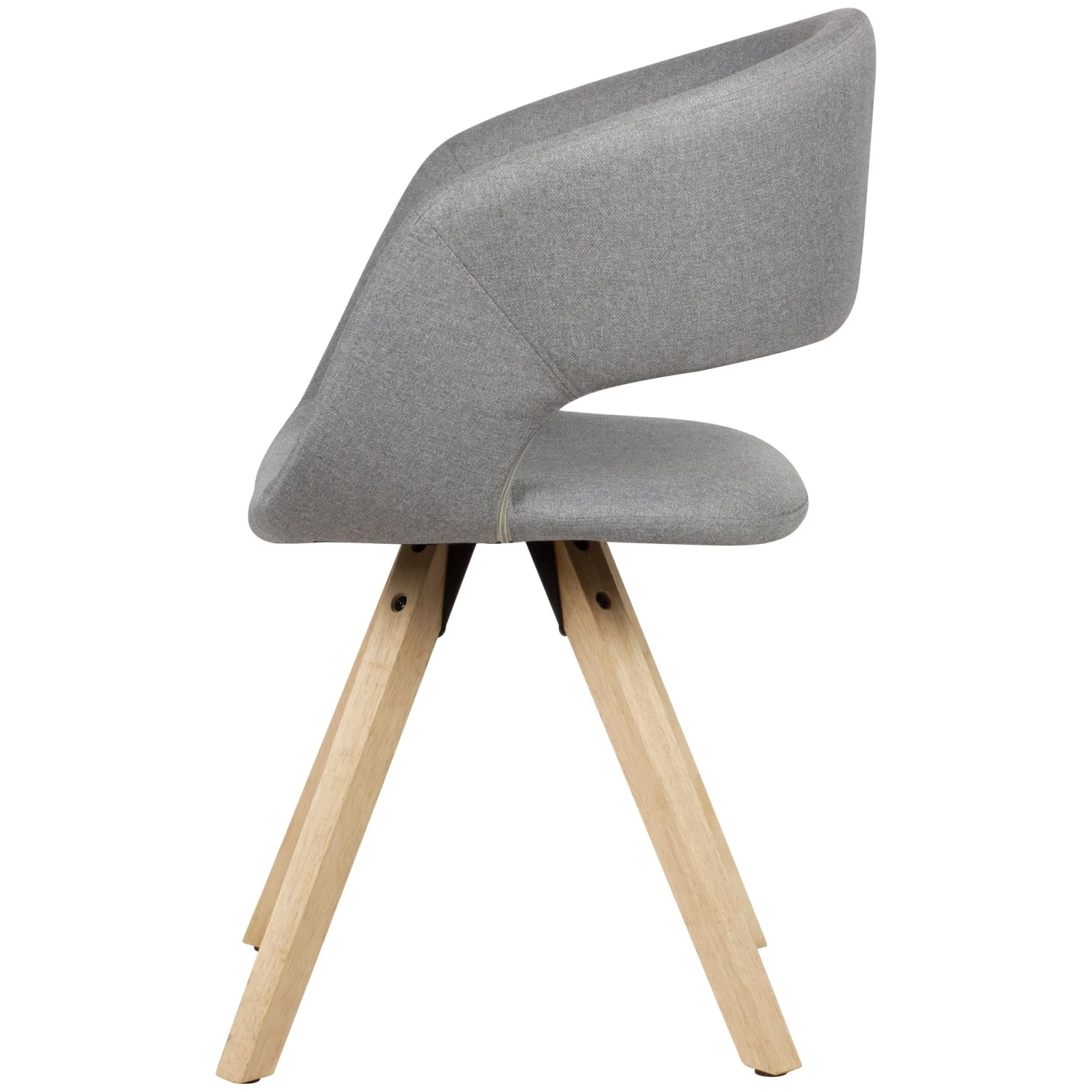 Design Trendiger Esszimmerstuhl im coolen Retro-Design Geschwungene & gepolsterte Sitzschale mit Rückenlehne Das massive Vierbeingestell rundet das Design gekonnt ab Abmessungen Breite: 56 cm Höhe: 80 cm Tiefe: 43 cm Sitzhöhe: 45 cm Sitzfläche (BxT): 39 x 43 cm Besonderheiten Filzgleiter an der Unterseite der Beine verhindern ein Quietschen oder Kratzen auf Ihrem Boden Die Sitzschale in Verbindung mit der üppigen Polsterung schafft längeren Genuss am Esstisch Empfohlene Maximalbelastbarkeit des Stuhls: 110 kg Der weiche und farbige Stoff ist der optimale Gegensatz zum harten und hellen Holz Material Sitzschalenbezug: Stoff Beine: Hevea Massivholz Textilzusammensetzung Bezug Sitzschale: 100 % Polyester Lieferumfang Ein Esszimmerstuhl ohne Dekoration Montage Lieferzustand: teilmontiert, lediglich die Beine müssen angebracht werden. Pflegehinweise Der Stoffbezug ist mit einem geeigneten Polsterreiniger zu reinigen. Bitte die Anweisungen des Reinigers beachten. Ausgelaufene Flüssigkeiten bitte sofort entfernen, um die betroffenen Stelle trocknen zu können.