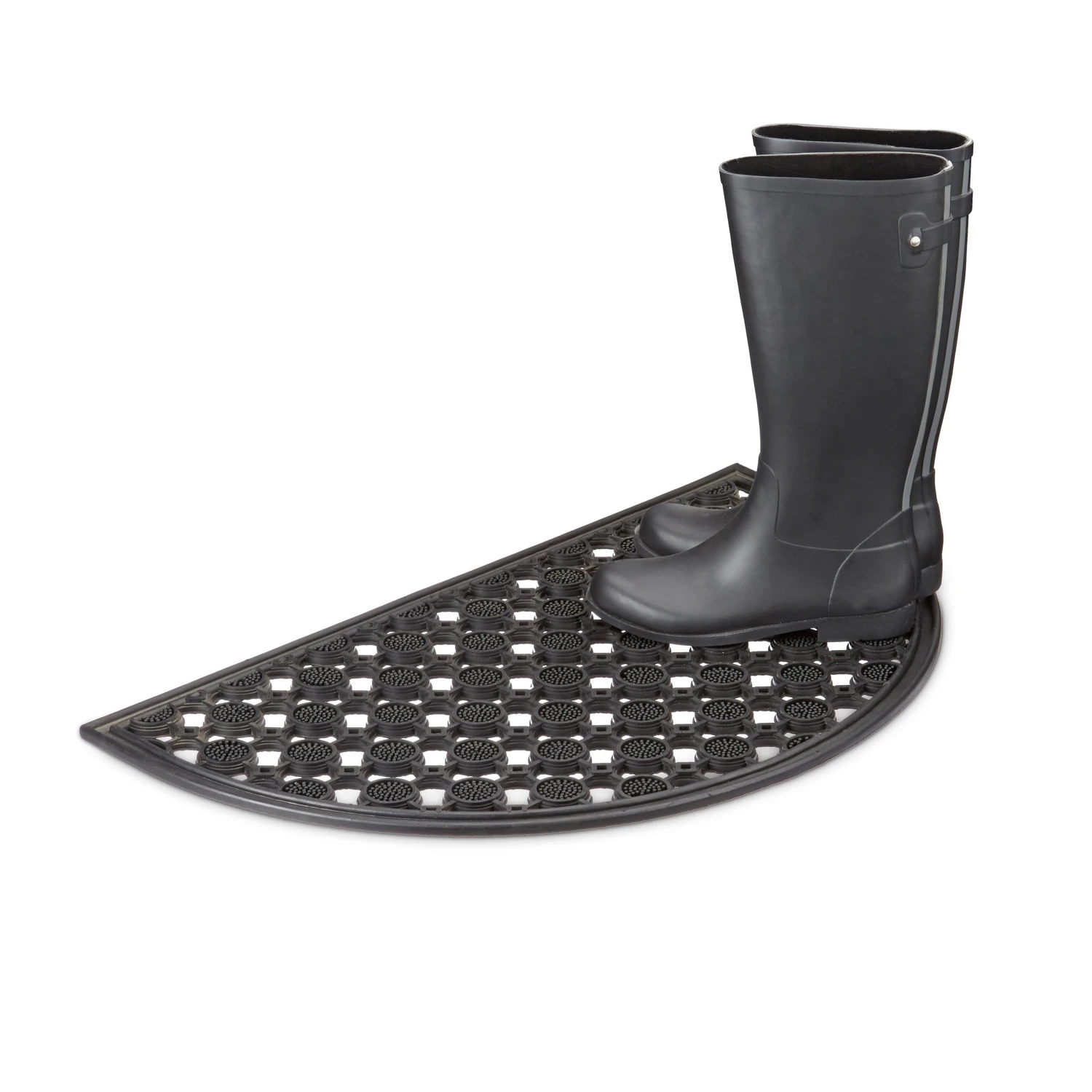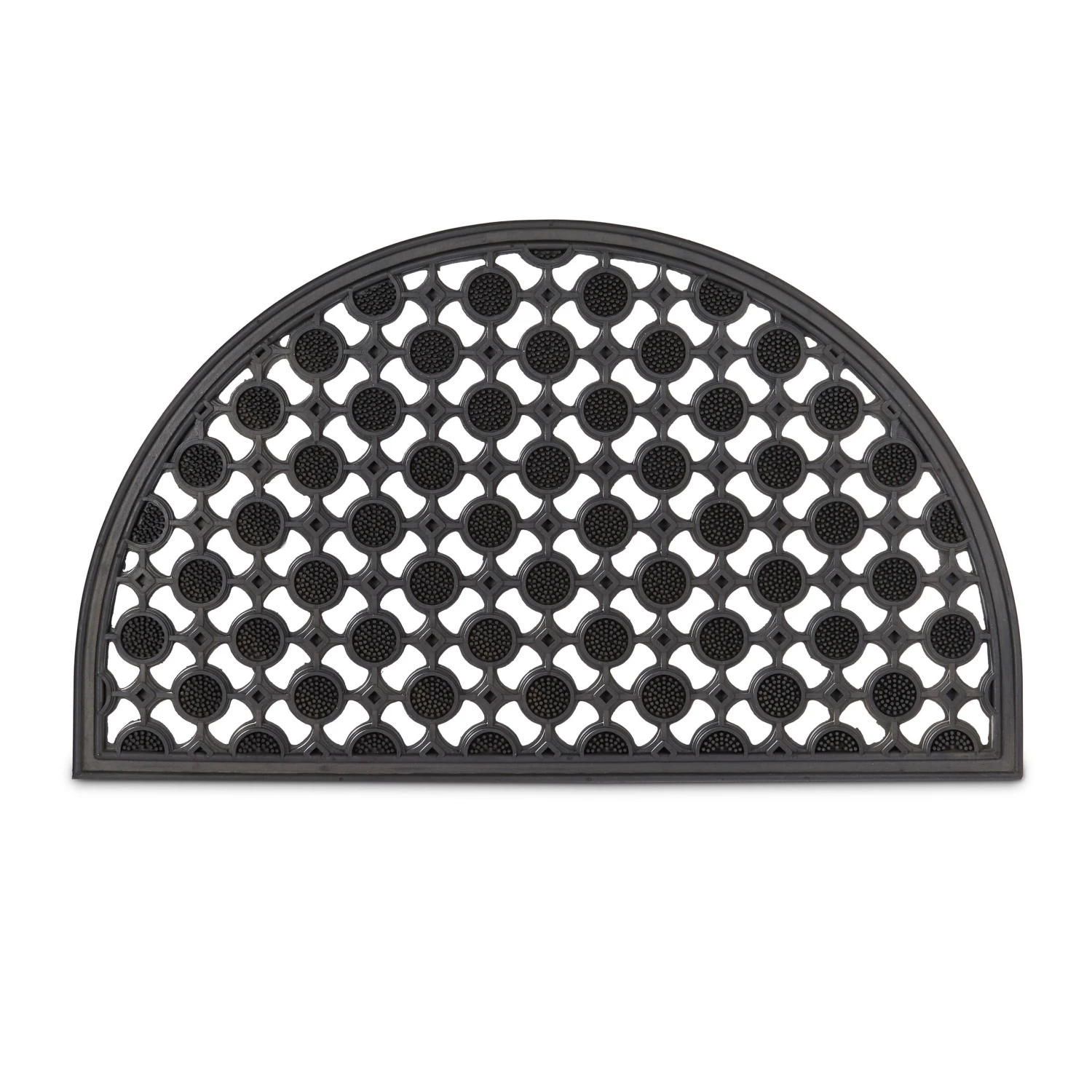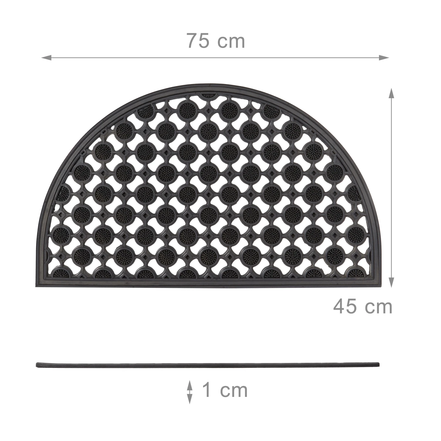 Sorgen Sie für Sicherheit und Sauberkeit gleichermaßen. Mit der halbrunden Fußmatte können Sie sich die Schuhe abtreten und Schmutz im Flur verhindern. Durch das rutschfeste Gummi sind Sie auch bei Nässe sicher vor Stürzen – das rutschfeste Material ist witterungsbeständig und eignet sich so auch für den Außenbereich. Durch das Gittermuster wird Staunässe verhindert, was den Fußabtreter langlebig und robust macht.