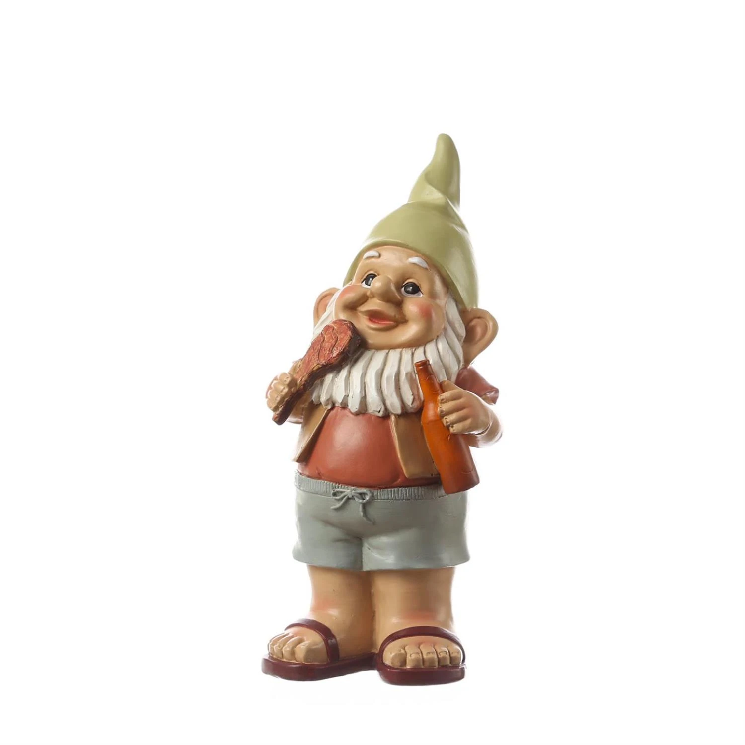 Gartenzwerg SKALLI – Zwerg mit Bier u. Fleisch – Dekofigur – Polyresin – H: 23cm – bunt