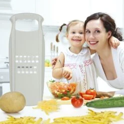 Egal ob Kartoffeln, Karotten, Sellerie oder aepfel, Birnen, selbst Hartkaese ist fuer unsere handliche Kuechenreibe kein Problem.