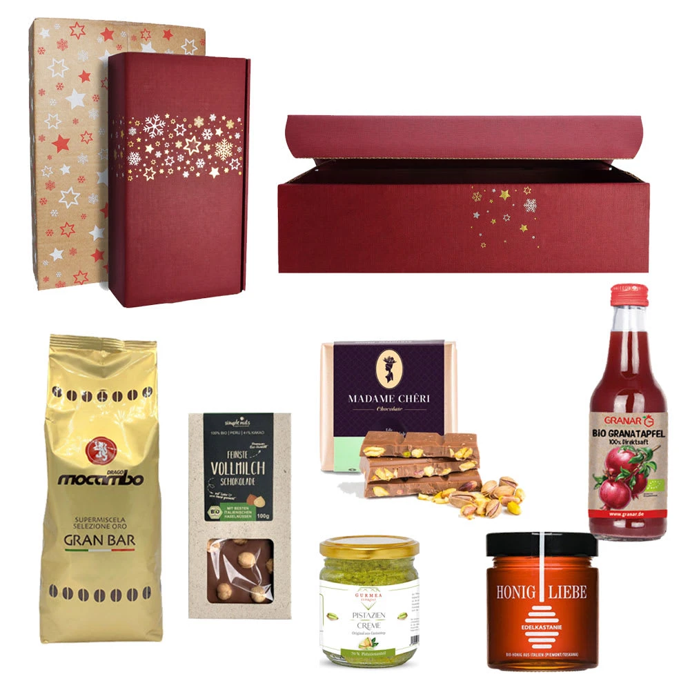 Die Geschenkbox „Feinkost“ besteht aus exklusiven Feinkost-Produkten für Ihre Weihnachtszeit.
