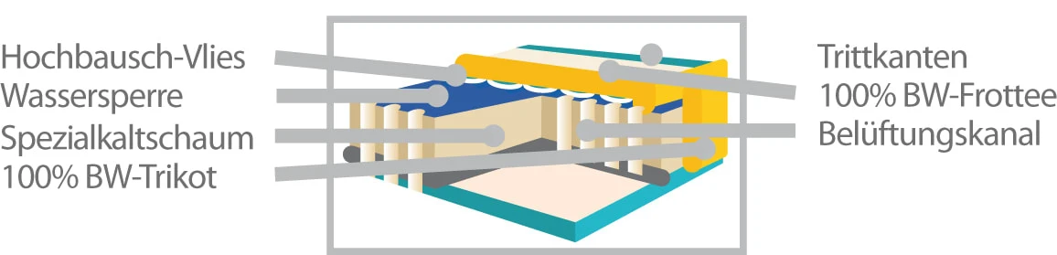 Kinder-Matratze Sanistar, Savanne Flame Resist antimon-reduziert. Bezug aus zertifizierter Baumwolle aus kontrolliert biologischem Anbau. Abnehmbarer, vollwaschbarer Bezug mit Reißverschluss. Wasserabweisende Einlage schützt vor kleineren Mallheuren. Der Kern besteht aus 100% Kaltschaum „Made in Germany“. Dauerelastisch bei hoher Produktelastizität. Trittfeste Kanten. Mit vertikalen Belüftungskanälen. Geprüft auf Schadstoffre nach Öko-Tex Standard 100. Geeignet für Allergiker!