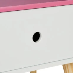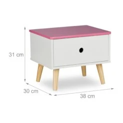 Dieser niedliche Kindernachttisch passt perfekt ins Kinderzimmer und lässt sich neben dem Bett bestens als Nachtkästchen nutzen. Auf der Ablage finden Bücher und Lampe Platz. In der Schublade der Kinderkommode lassen sich kleine Schätze verstauen. Durch seine abgerundeten Ecken und die niedrige Höhe ist der Kindernachtschrank besonders kindgerecht, sodass Deine Kleinen immer alles griffbereit haben. Der Retro-Look mit seinen 4 Holzbeinchen begeistert alle Kinder.