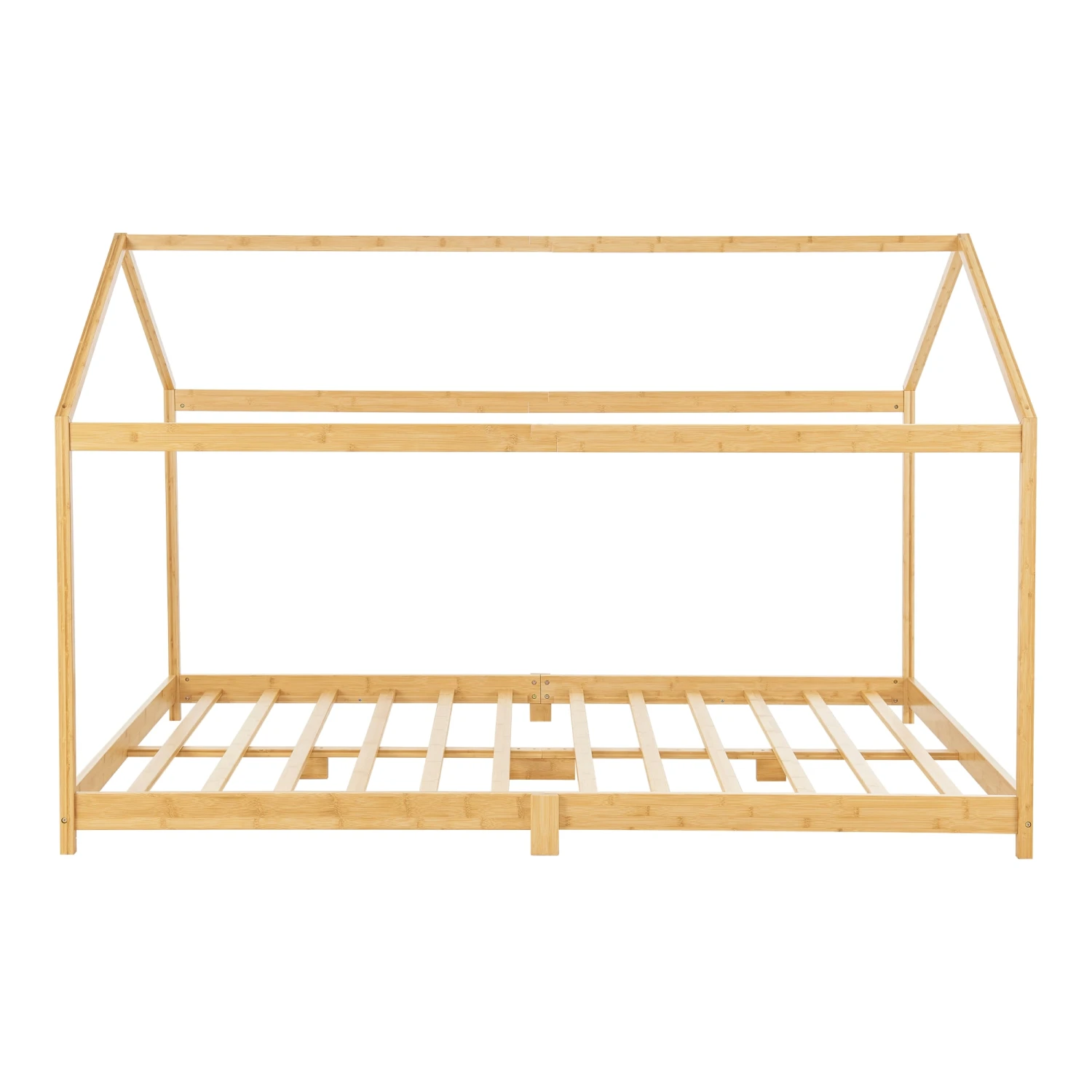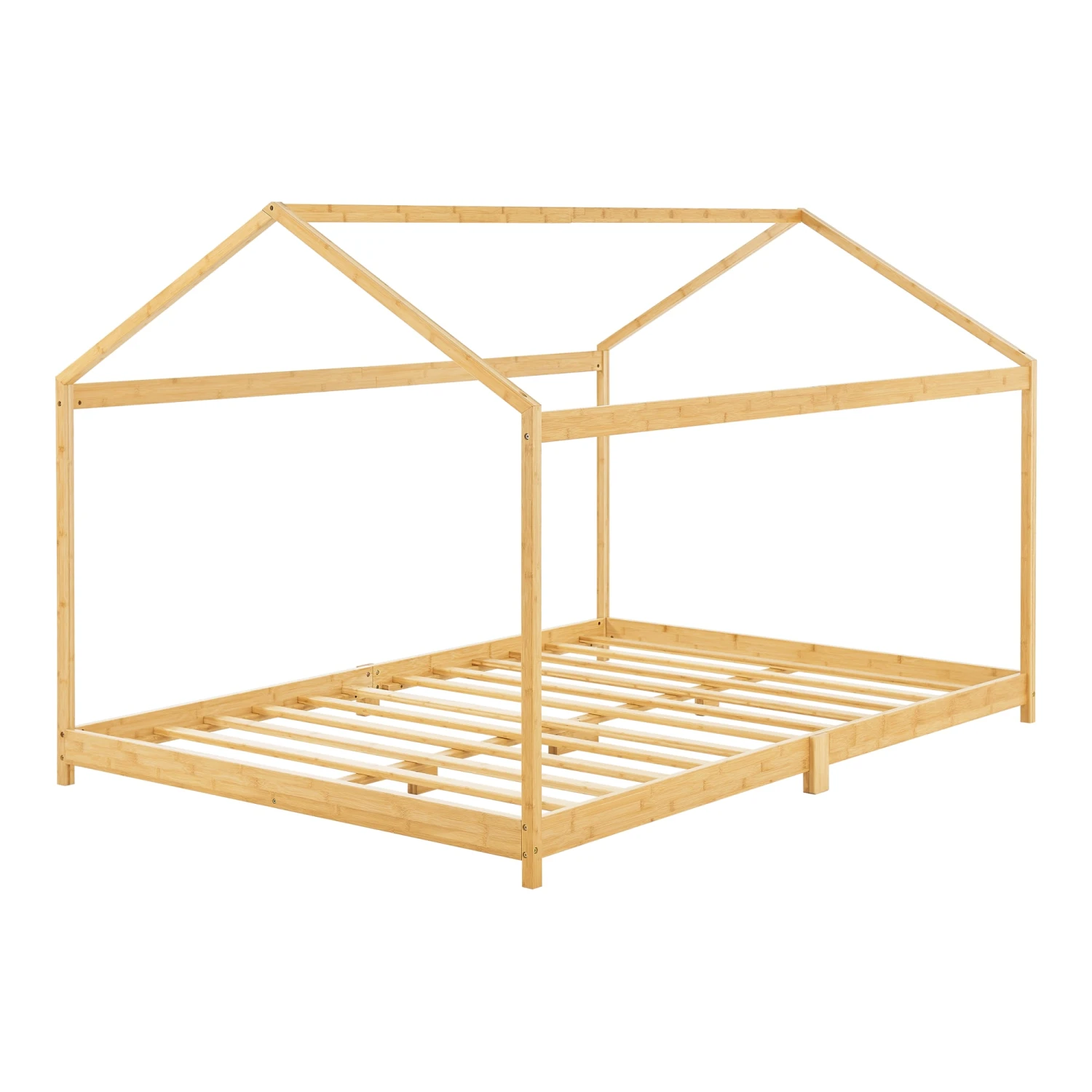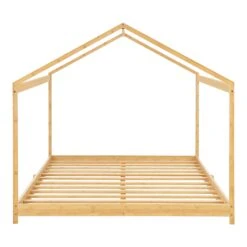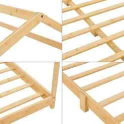 Das stabile Kinderbett aus Bambus verschönert durch seine Optik jedes Kinderzimmer und bietet einen angenehmen Schlafplatz.