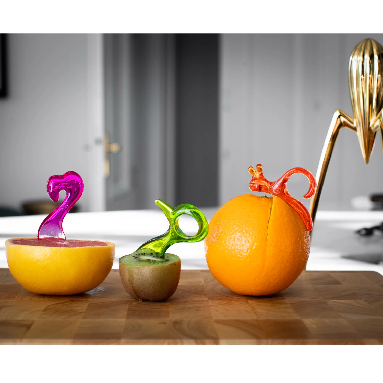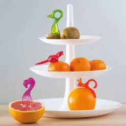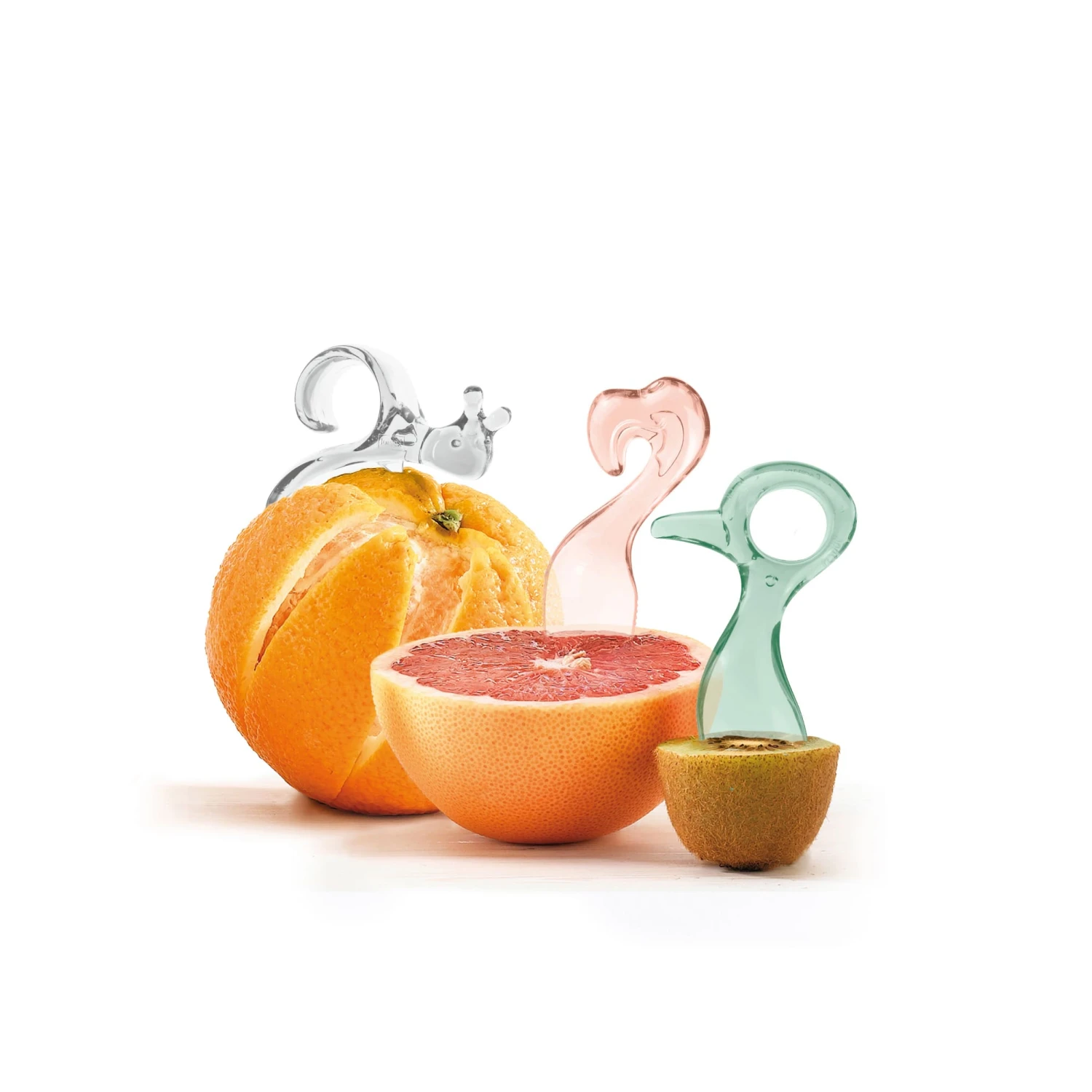 Frische Vitamine x 3 – jetzt im praktischen Set. So macht EMMA P. das Orangenschälen zum Vergnügen. Die kleine Klinge schneidet mühelos in die Schale, ohne das Fruchtfleisch zu berühren. Der Saft bleibt in der Orange und die Finger sauber. Mit PINK sind Grapefruits einfach ein Genuss, der gezahnte Löffel erleichtert das Herauslösen des Fruchtfleisches. KIWI ist weit mehr als nur ein Löffel, mit ihm lassen sich die Früchte auch öffnen. Mit der Schnabelspitze wird die Kiwi rundum eingeritzt und beide Hälften einfach gegeneinander verdreht. 3er-Set •praktisches 3er-Set, ideal für unterwegs•EMMA P. Orangenschäler schneidet mühelos die Schale•gezahnter Grapefruit-Löffel PINK•KIWI Öffner und Löffel•100% CO2-neutral KOZIOL THERMOPLASTIC