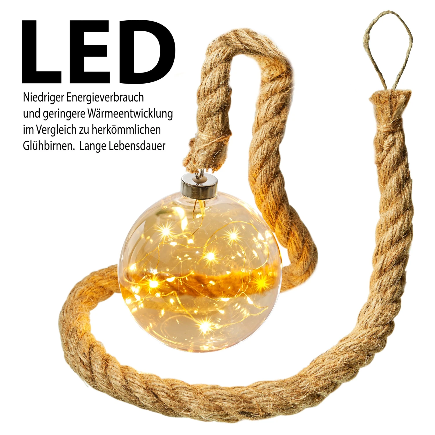 Mit unserer AMARE LED-Kugel am Seil können Sie charmante dekorative Akzente in Ihrem Zuhause setzen! Die verschiedenen Varianten der LED-Leuchte bringen stimmungsvolle Beleuchtung in jeden Raum – vom Weihnachtsbaum bis zum Wohnzimmer. Zudem sorgen die verarbeiteten LEDs für einen extrem niedrigen Energieverbrauch und bieten dennoch schöne Lichteffekte für alle Gelegenheiten und Stimmungen, die man sich im Laufe des Tages wünscht.