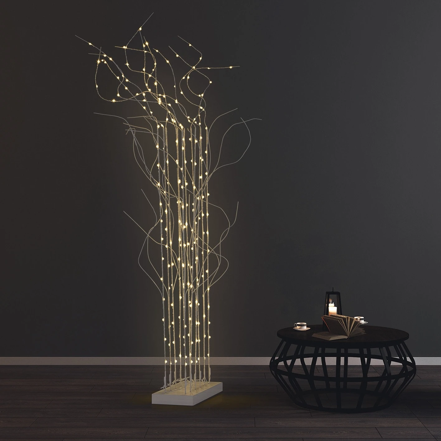 – Lieferumfang: 12 x LED-Leuchtzweige mit Netzkabel, 1 x Sockel, 1 x Steckernetzteil