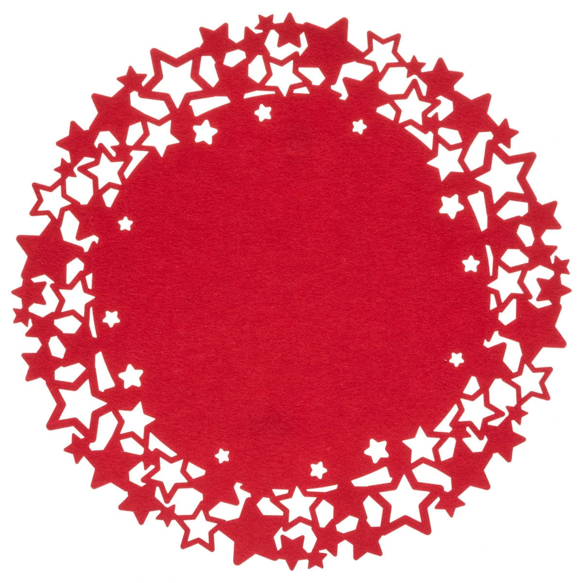 Festiveform: Filz-Tischunterlage ist einfach Art, einen festlichen Tisch zu dekorieren. Das Pad hat eine intensive Farbe rot. Sein durchbrochener Saum war mit ausgeschnittenen Sternen verziert.