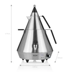 Der BEEM Samowar Pyramid A4 – 4 l überzeugt durch sein modernes Äußeres in Pyramidenform ebenso wie durch seine inneren Werte. Zwei leistungsstarke Heizspiralen mit einer Gesamtleistung von 2500 W sorgen für extrem schnelles Erhitzen. Da Tee-Aroma sich bei etwa 98 °C am besten entfaltet, hält die 500 W Spirale die optimale Temperatur bei höchst möglicher Energieeffizienz. Durch das stufenlos einstellbare Thermostat können Sie jedoch auch ganz individuelle Einstellungen vornehmen.