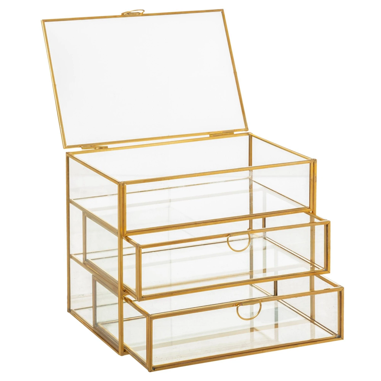 Schmuckschatulle mit Schubladen, Glas, Größe S ist das perfekte Produkt, wenn Sie nach einer Möglichkeit suchen, Ihre Schmuckkollektion zu organisieren. Sehen Sie sich das Markenangebot von Atmosphera an, das Sie in unserem Shop finden – Sie finden eine große Auswahl an Schachteln, Schatullen und Schmuckaufhängern.