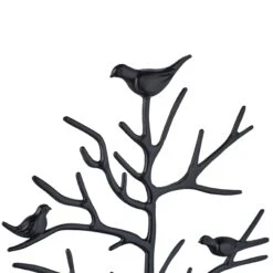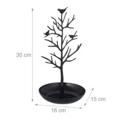 Der Schmuckbaumständer in verspielter Optik lässt Frauen- und Mädchenherzen höher schlagen. An den zahlreichen Verästelungen finden Deine Lieblingsschmuckstücke wie Ketten und Ohrringe ausreichend Platz. Uhren, Broschen oder Anhänger können auf dem praktischen Schmuckteller abgelegt werden. Das edle Baum-Design macht den Kettenhalter auch ohne viel Schmuck zum dekorativen Accessoire im Bad oder Schlafzimmer. Nie wieder suchen: Mit dem Schmuckständer hast Du Deine Kostbarkeiten stets im Blick.