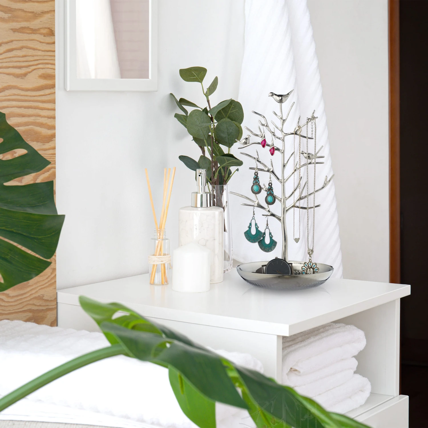 – Mit praktischem Schmuckteller zum Ablegen von Uhren und mehr