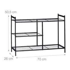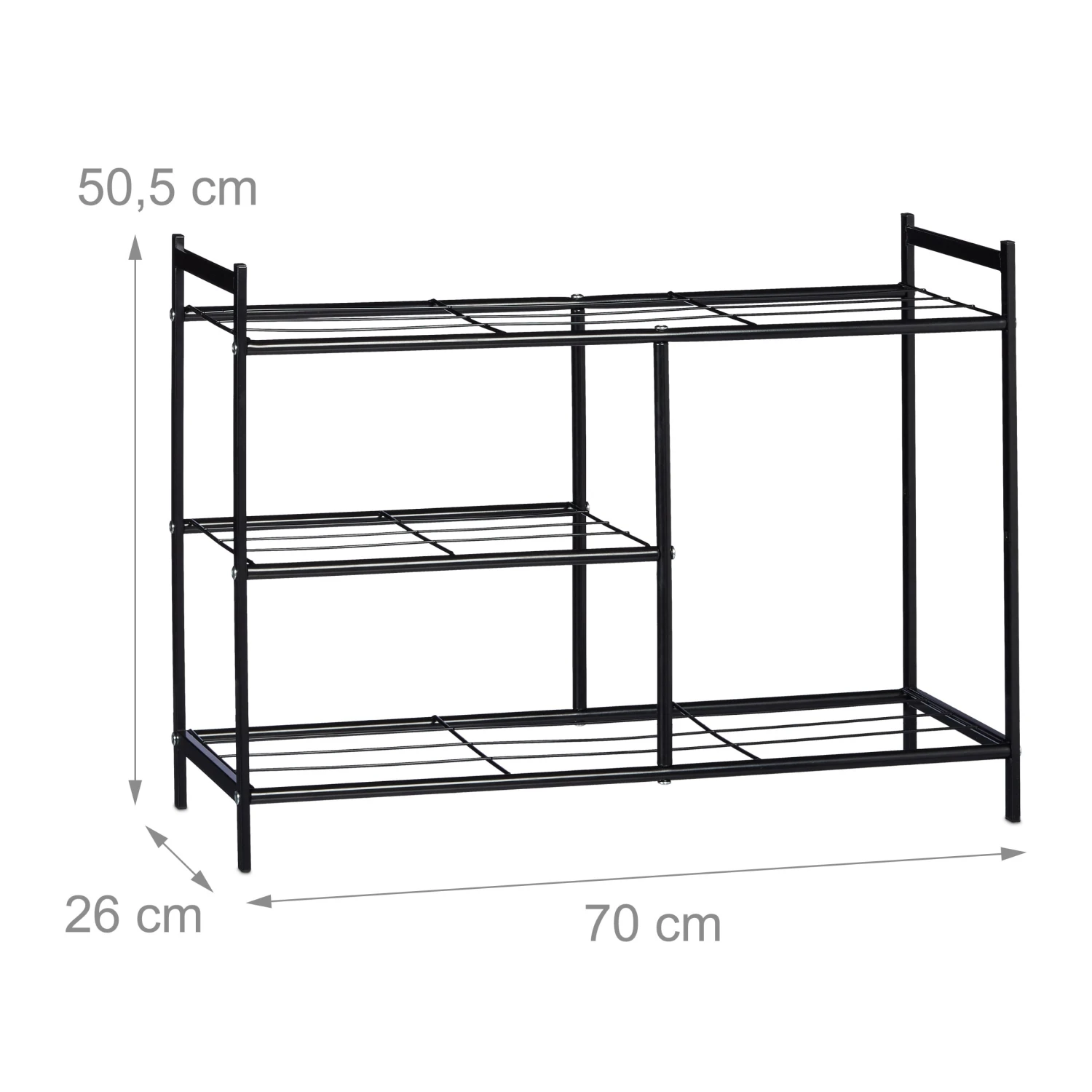 Diese Schuhablage der SANDRA-Kollektion bietet idealen Stauraum für den Flur oder das Treppenhaus. Auf den 3 Ablagen aus pulverbeschichtetem Metall können insgesamt – je nach Größe – bis zu 8 Paar Schuhe abgestellt werden. Das Highlight ist das große Fach für Stiefel oder Stiefeletten mit langem Schaft.