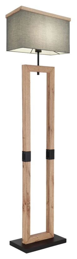 Stehleuchte Metall schwarz matt, MDF holzoptik dunkel, Textil anthrazit, MDF holzoptik dunkel, Kabel Textil schwarz, Fußtrittschalter im Kabel, Artikel in KD – MDF Rahmen ist zerlegt, LxBxH: 400x200x1550mm, Kabellänge 3000mm, exkl. 1x E27 LED 9W 230V