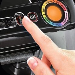 Der OptiGrill+ bietet mit dem neuen Zubehör unendlich viele Zubereitungsmöglichkeiten. Inklusive der Technologie „Automatic Sensor Cooking“: Garzeit und -temperatur werden auf Grundlage von 6 Garprogrammen (Burger, Steaks, Sandwiches, Würstchen, Fisch, Geflügel) automatisch je nach Dicke und Menge des Grillguts reguliert. Eine direkte Überwachung ist über den Lichtindikator möglich: Violett für Vorwärmen, blau, dann grün zum Garbeginn, gelb, wenn das Grillgut blutig gebraten ist, orange für medium und rot für durchgebraten. Auf den Punkt für jeden Geschmack! Einfach den Deckel anheben und das Fleisch herausnehmen, wenn es fertig ist. Der Rest kann weiter garen! Mit dem zusätzlichen manuellen Modus am Grill mit 4 regulierbaren Temperaturen können Sie verschiedenste Lebensmittel, unter anderem auch Früchte und Gemüse, genau so zubereiten, wie es Ihnen schmeckt. 2.000 Watt Leistung.