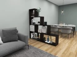 Die Treppenregale eigenen sich auch ganz ausgezeichnet als stylishe Raumteiler. Mit der hohen Seite an einer Wand befestigt, schaffen sie unabhängige Bereiche in großen und kleinen Räumen. Mehrere Stufenregale können auch zu einer kompletten Wohnwand zusammengefügt werden. Zeige Deine Individualität!