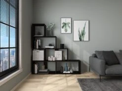 Das formschöne, zeitlose Treppenregal Scala bietet viele verschiedene Einsatzmöglichkeiten, um in Deinem Zuhause neuen Stauraum zu schaffen. Ob als moderner Raumteiler, Bücherregal oder zur Nutzung unter Dachschrägen und Treppen, die 2 kleinen und 4 großen Fächer in asymmetrischer bieten eine tolle Optik und eignen sich besonders für Dekorationen, Anordnung, Kerzen, Vasen und Pflanzen. Präsentiere Deine Pokalsammlung, oder verstaue Dinge in Faltboxen, um ein aufgeräumtes Ambiente zu kreieren. Auch als Büroablage in Deinem Arbeitszimmer oder Home-Office wird es Dir gute Dienste leisten. Hier kann alles griffbereit einsortiert werden.