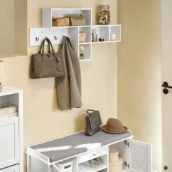 Haben Sie schon das ganze Haus auf den Kopf gestellt, nur um Ihre Schlüssel zu finden? Das gehört der Vergangenheit an – Schlüssel, Hüte, Jacken und Taschen können an dieser Wandgarderobe ordentlich aufgehängt werden.