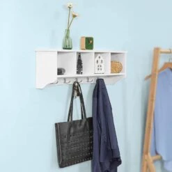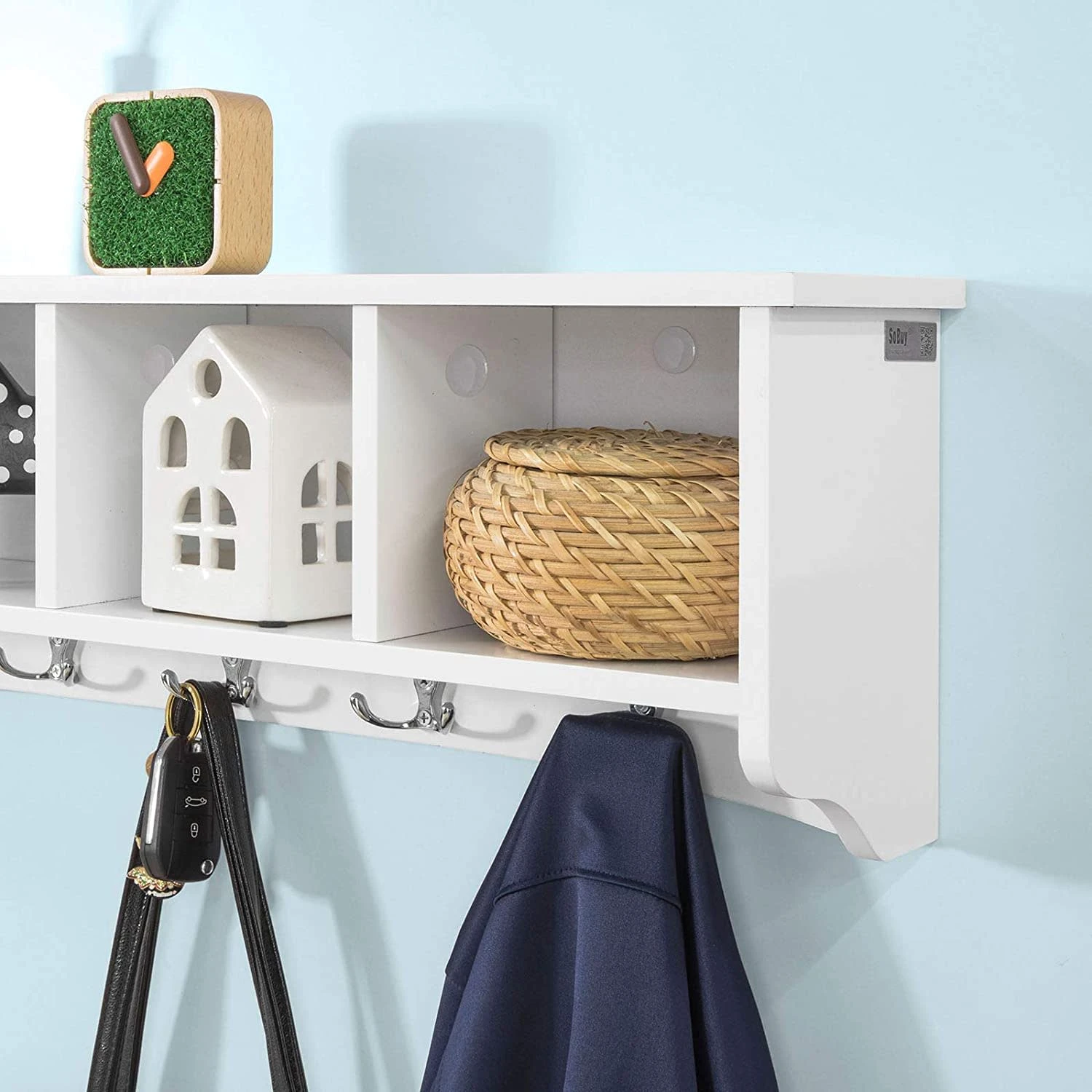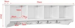 Diese Wandgarderobe ist sehr praktisch für Flur, Bad oder auch Küche. Mit den vier offenen Fächern haben Sie genügend Platz für Gewürze, Dekorationen oder Bad Utensilien.