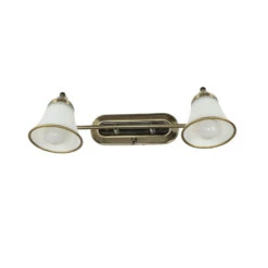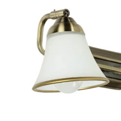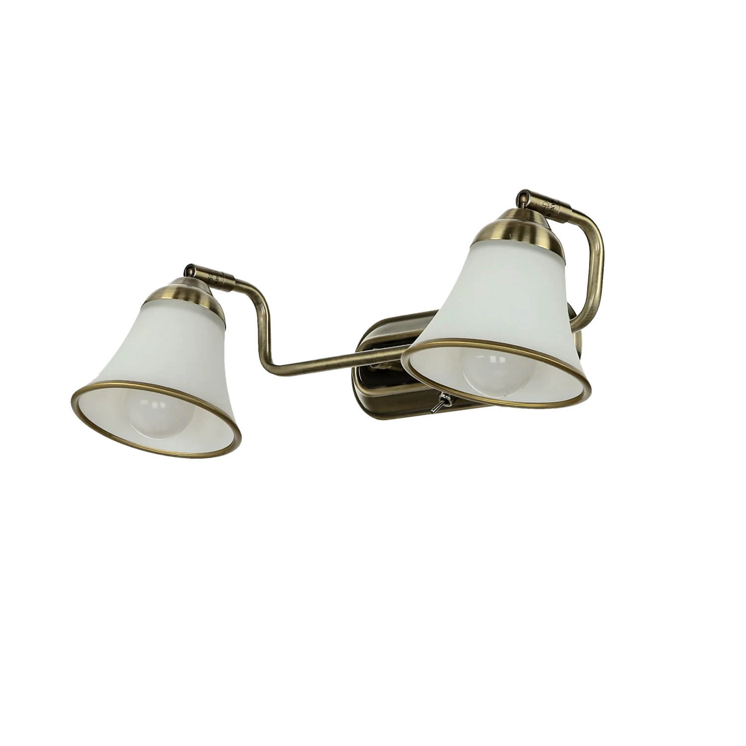 Fassung: E14 R50 2x max.40W | Farbe: Bronze, Weiß | Material: Metall, Glas | Spannung: 230V | Spritzschutzklasse:IP20 | Elegante Wandlampe für das Badezimmer in Bronze und Weiß | Die dreh- und schwenkbaren Lampenschirme erlauben eine zielgerichtete Beleuchtung – ideal über dem Spiegel | Der farblich abgesetzte Rand der Glasschirme unterstreicht das edle Jugendstil Design | Dank ihrer schlichten Eleganz fügt sich die Badezimmerleuchte wunderbar in viele Wohnstile ein und setzt stilvolle Lichtakzente | Freie Leuchtmittelwahl: Helligkeit und Lichtfarbe können durch LED-Leuchtmittel variiert und auf jeden Raum abgestimmt werden | nicht inklusive | Zur Montage im Badezimmer geeignet, wenn der Abstand zur nächsten Wasserquelle mindestens 1,2 m beträgt | Maße der Wandhalterung: 200 x 70 mm | Die Bilder zeigen Tag- und Nachtaufnahmen, daher können die Farben auf den Abbildungen variieren