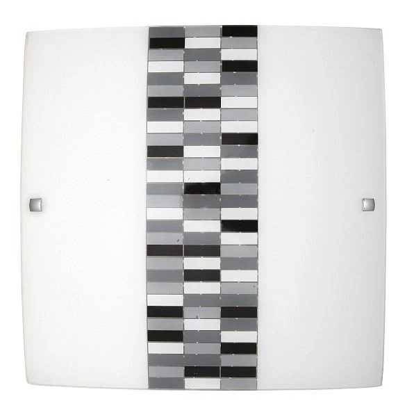 Fassung: 2x E27 bis 60W | Farbe: Milchglas, Schwarz, Grau | Material: Metall, Glas | Spannung: 230V | Spritzschutzklasse:IP20 | Zeitlose Deckenleuchte aus Milchglas in Schwarz, Weiß und Grau | Elegantes Design mit schön angeordneten Farb-Mosaiken | Blendarme Lichtstreuung durch Milchglas | Vielfältig einsetzbar in Wohnzimmer, Küche oder als Badlampe | Helligkeit und Lichtfarbe können durch selbst gewähltes Leuchtmittel der Fassung E27 beeinflusst werden – auch LED | nicht inklusive | Montage an Decke und Wand möglich