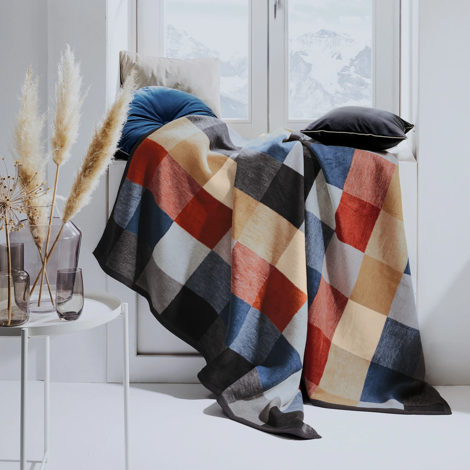Erwin Müller Jacquard Wohndecke. Ein Traum für gemütliche Stunden auf dem Sofa. Gerne lassen Sie sich von der samtigen Qualität verwöhnen. Die angenehme Materialmischung macht dieses Wohnaccessoire so kuschelweich, hautsympathisch, atmungsaktiv, pflegeleicht und strapazierfähig. Rundum mit Veloursband eingefasst.